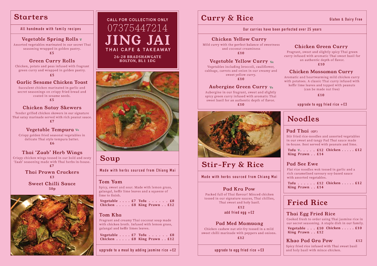 Welcome to Jing Jai Thai Cafe, a hidden gem nestled in the heart of Bolton at 26-28 Bradshawgate, BL1 1DG. This charming cafe specializes in authentic Thai cuisine, providing not just a meal, but a delightful journey to Thailand with every bite. With a cozy, homey atmosphere, Jing Jai Thai Cafe is perfect for anyone looking for soul-soothing comfort food, whether you're here for a casual lunch or a laid-back dinner.